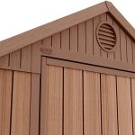Ideal outdoor storage solution for all garden tools and equipment, BBQs, bicycles and DIY tools. Elegant wood affect exterior with door, plus ventilation ducts for air circulation. Floor panel with integral window for natural lighting and padlock hasp for optional added security. Made out of a durable, maintenance and fade-free weather-resistant plastic.