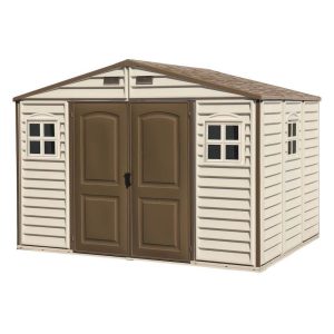 The Premier 7511 shed provides the ultimate storage solution for outdoor furniture, BBQ and garden equipment. Big on style, stability and functionality, Premier storage sheds feature weather-resistant, rigid double-walls and roof that keep your contents protected even in extreme rain, wind and snow. The ultra-spacious interior holds all your belongings and comes with a heavy-duty floor panel that protects your ATVs or mowers from mud and rainwater. The full-length skylight and built-in ventilation ensure plenty of natural light and airflow at all times, and doors are lockable for added peace of mind.