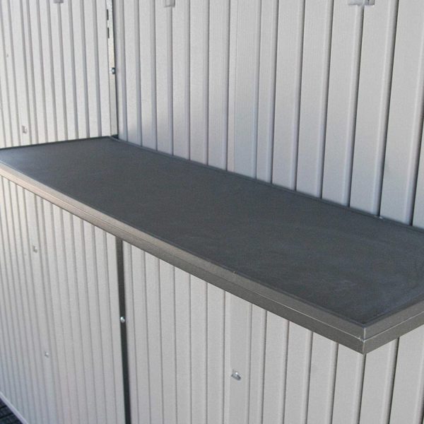 Ideal outdoor storage solution for all garden tools and equipment, BBQs, bicycles and DIY tools. Elegant wood affect exterior with double doors, plus ventilation ducts for air circulation. Floor panel with integral window for natural lighting and padlock hasp for optional added security. Made out of a durable, maintenance and fade-free weather-resistant plastic. It is resistant to rot, decay and other damage.